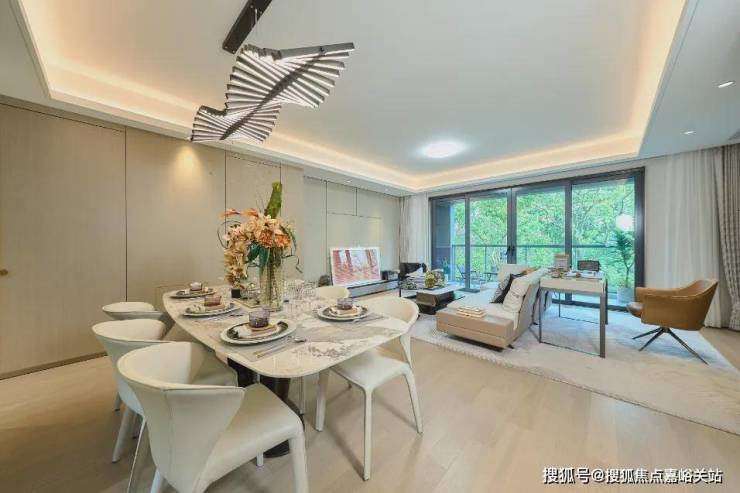室内功能区域分布清晰,动线灵活,没有廊道空间的浪费,充分利用每一寸室内空间。客餐厅一体化搭配南向大面宽阳台,营造出大平层级的阔绰享受和宽境视野。