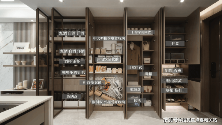 全屋收纳系统, 满足一家老小海纳空间!约 2.25mx2.4m的超体量玄关柜,为生活扩容,可容纳约56个20寸行李箱,而 玄关柜、岛台、卫生间镜柜、主卧衣帽间等空间,把更多隐藏空间打造成超级收纳功能,让未来的生活井井有条。