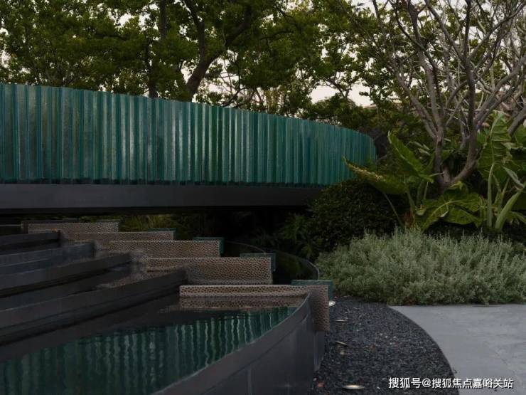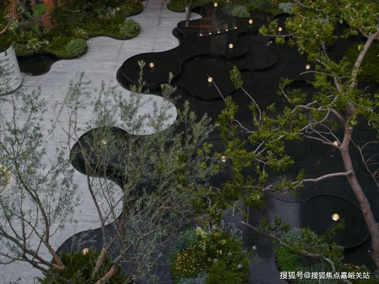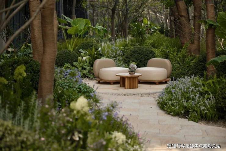 建筑的硬朗线条与植物的柔性共生,不规则石板小径蜿蜒延伸,若隐若现于光影之中。两侧植被自由生长,枝叶交织,生成层层递进的空间韵律。