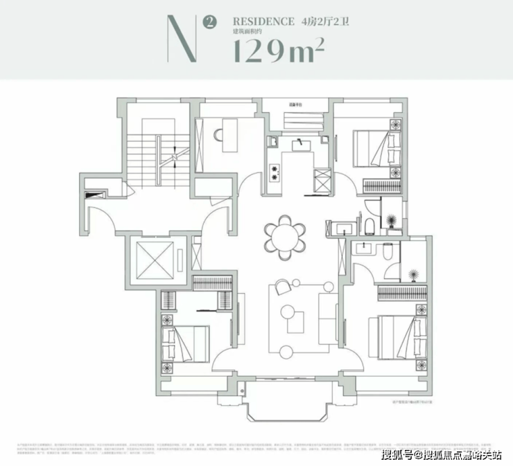 建面约129㎡4房2厅2卫:一梯两户,层高3.05米,三开间朝南,全卧飘窗,LDK一体化设计,南北直通,南向整体面宽约11.1米,其中客厅面宽约4.4米,主卧面宽约8.6米!