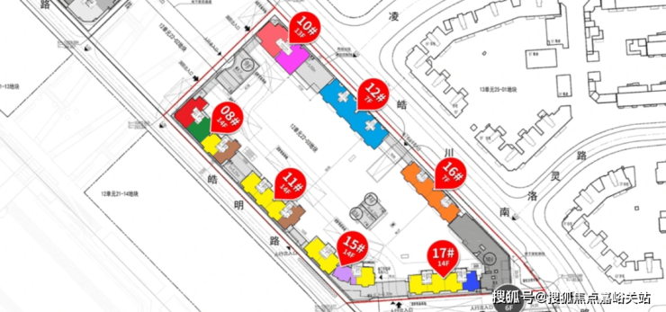 11#、15#、17#总高14F,户型为建面约99㎡3房2厅2卫,仅17#东边户为建面约86ni3房2厅1卫,一梯两户,层高3.05米;