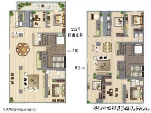 3. 建面约 258-312㎡ 4 房 2 厅 4 卫(一步到位,总价 3500 万起)