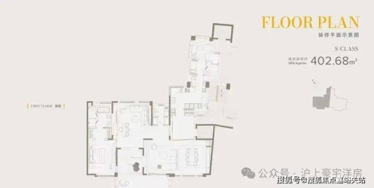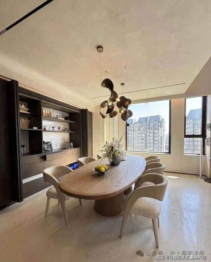 作为古北板块近五年唯一的纯复式大宅,项目以极致设计打破平层局限,打造 “垂直化的墅质生活”, 主力建面约 405㎡户型,采用上下双层格局,一层规划客餐厨一体化社交空间,二层打造私密居住层,实现 “动静分离、公私分区” 的完美动线。