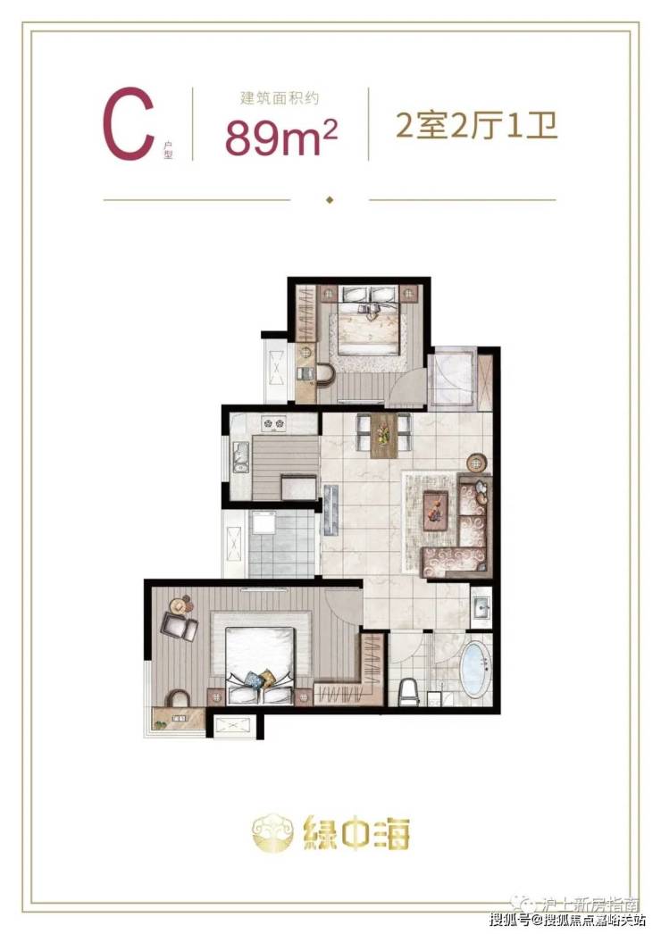 建面约87-89㎡2房2厅1卫