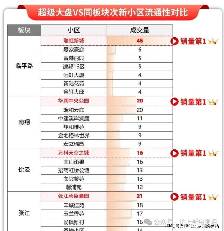 从过往表现来看,但凡能定鼎区域大盘的项目,比如瑞虹新城、汤臣豪园、华润中央公园、万科天空之城,首先销量即流通性区域第一!