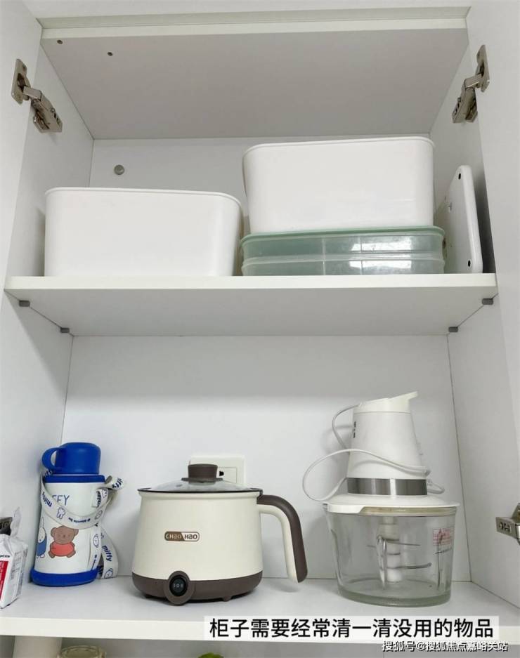 看到没,即便是隐藏收纳,她做得也十分到位,不会因为是在柜子里就胡乱摆放,这点值得学习。