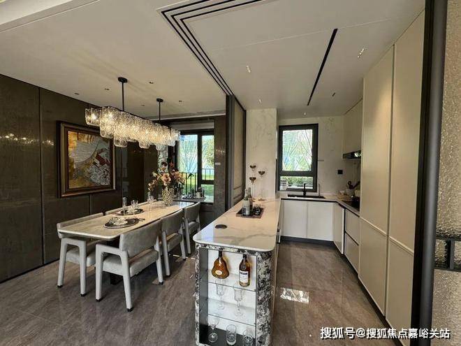 再来看下厨房配置。U型厨房,预留了大约1米宽的双开门冰箱位置,厨电采用方太四件套——烟机、灶具、蒸烤一体机、洗碗机。其中洗碗机,轻扣门板可自动开门的新款!招商中旅观境售楼处电话☎:400-833-6309【已认证】在售户型图丨项目介绍丨最新房源丨周边配套丨详细解答〢