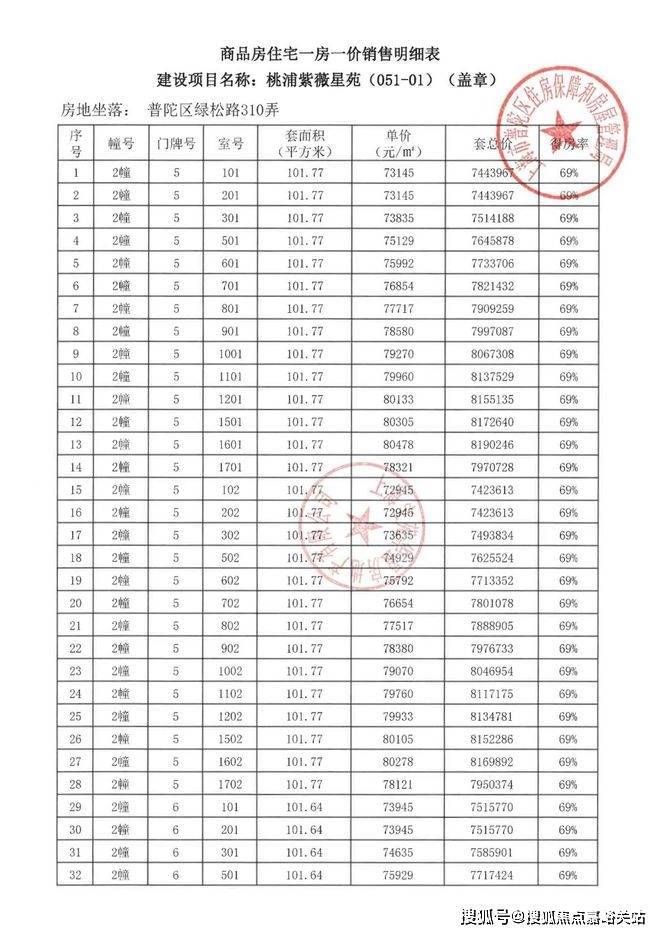 项目一房一价表▼