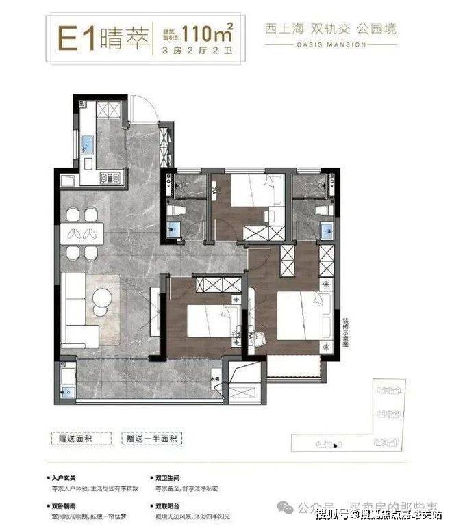 户型面积:建筑面积约80㎡-110㎡