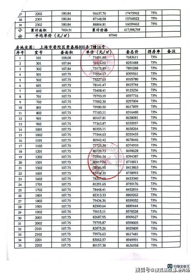 一房一价表: