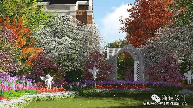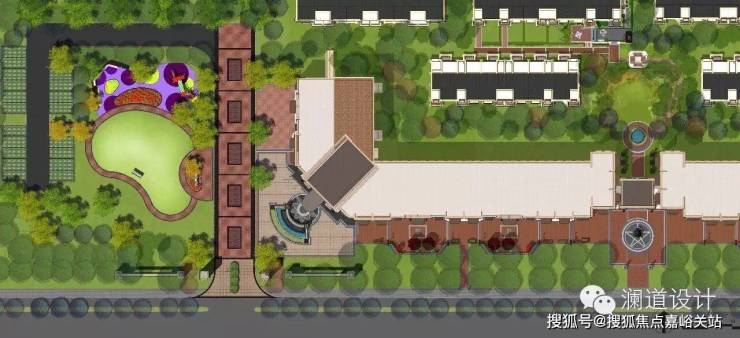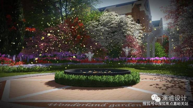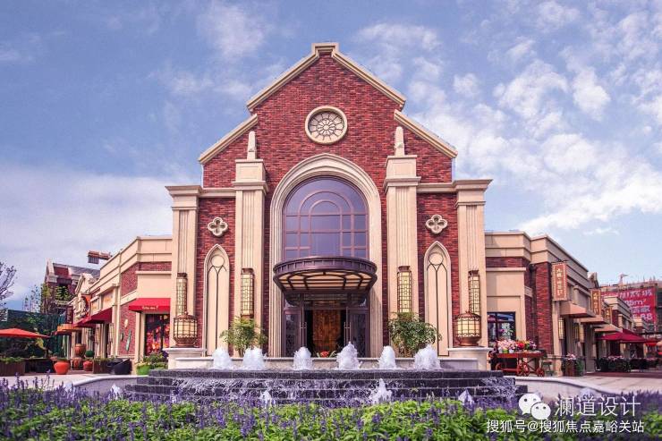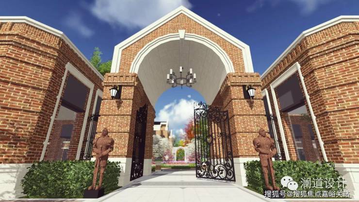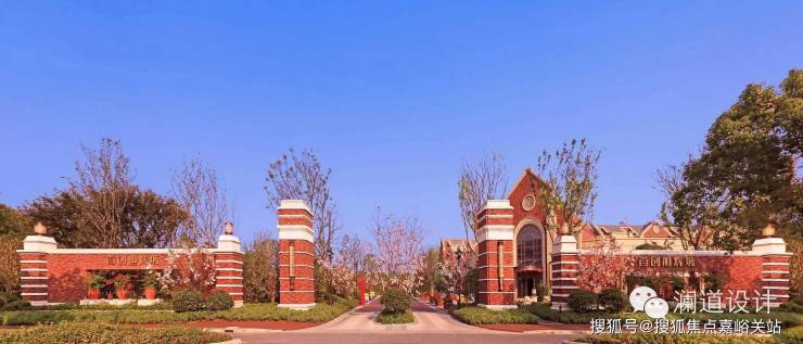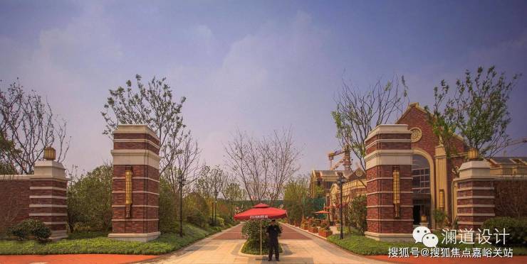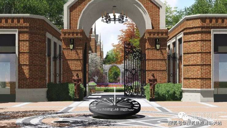 以英式教堂风格建筑为背景的售楼处前广场,透露出传统英伦的独特气息;入口处庄重的红砖立柱与红砖景墙,既有文化的沉淀,又有经典的浪漫情怀;售楼处前的水景演绎着经典,提升了整个前广场的气质与内涵。