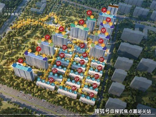 社区规划:27 栋(11-18 层精装小高层 + 5-6 层叠墅),总户数 1022 户,车位比 1:1.22,全人车分流
