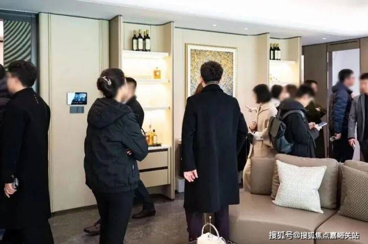 示范区现场络绎不绝,售楼处沙盘前围满人,样板间需要排队参观...