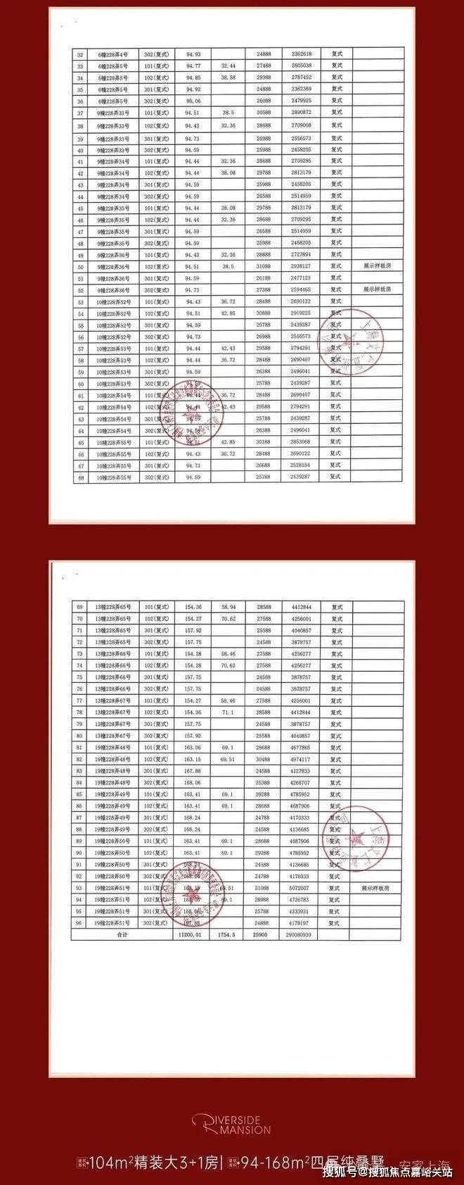 建面约94-155-158-163-168m²叠墅(四层)