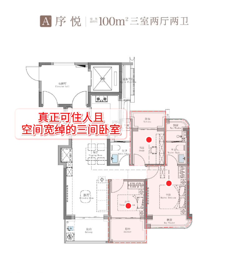 首先,项目凭借着3阳台的设计,给到客户一个真正的三房户型: