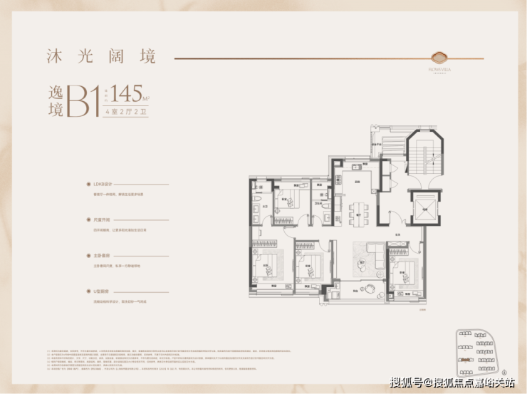 户型特点: 4开间朝南,LDK一体化设计,南北通透。客厅面宽达4.3米,外接4.8米长阳台,采光通风俱佳。主卧带270°转角飘窗,主卫也有飘窗赠送。全屋飘窗设计,独立电梯厅,私密性与尊享感强。
