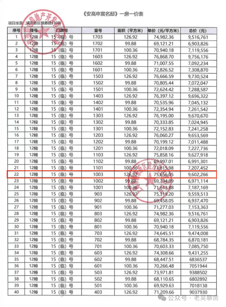 横向对比就来的更为直观:同板块大约2年前入市的安高申宸院,收官批次约127㎡中区房源总价约960万。
