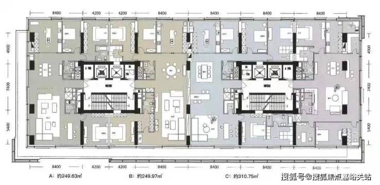 • 面 积:200.96㎡-𝟐𝟓𝟎.𝟏𝟒㎡(交付三房两厅三卫)