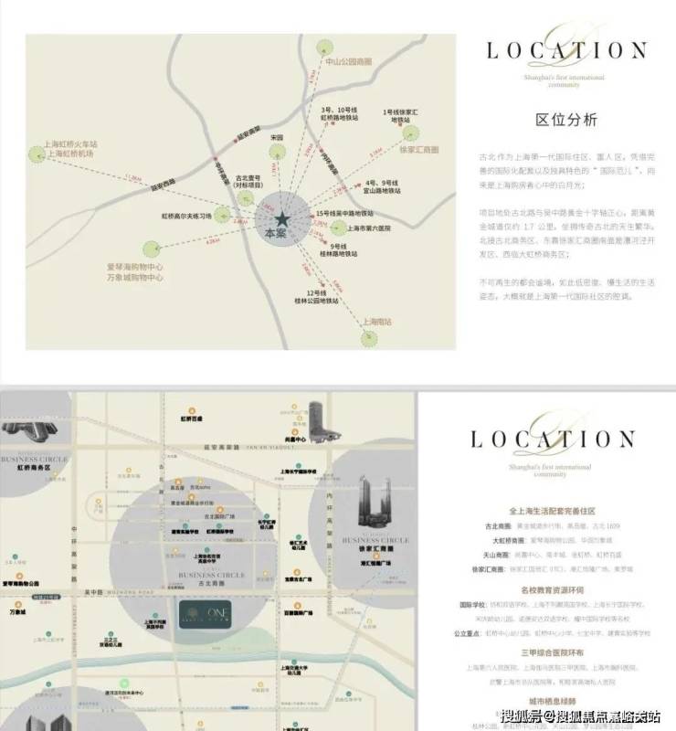 一、区位和交通:1.1、我们地处闵行长宁交界的古北板块,项目依托虹桥交通枢纽和长宁徐汇商圈,交通便利配套成熟,是上海第一个大型高标准的国际豪宅社区。