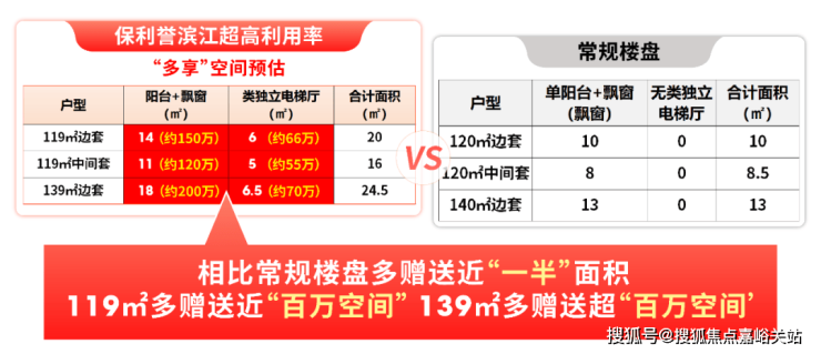 把阳台、飘窗、私厅的多享面积全部算上,保利誉滨江的“性价比暴击”一目了然: