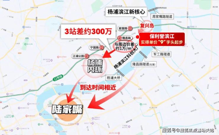 与杨浦内环相比,单价便宜约3万/㎡, 价差高达300万 ,但到陆家嘴的通勤时间相差无几,无需为“内环标签”额外拉杠杆;
