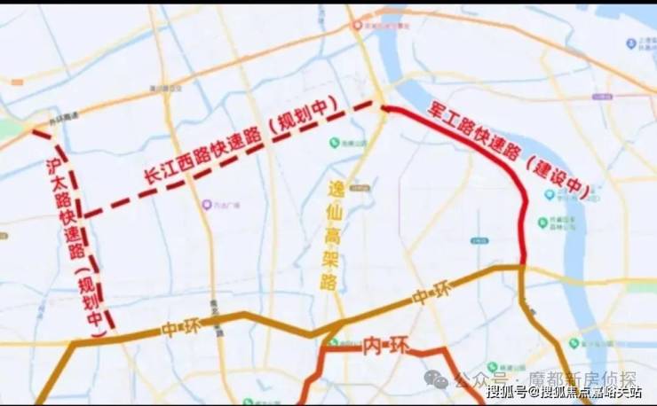 在北上海中外环间,规划有3条快速路,分别为在建中的军工路快速路,以及规划中的长江西路快速路、沪太路快速路。这3条快速路相互连接,头尾均可联通中环线。