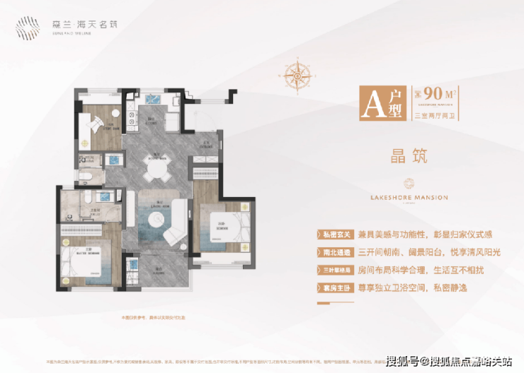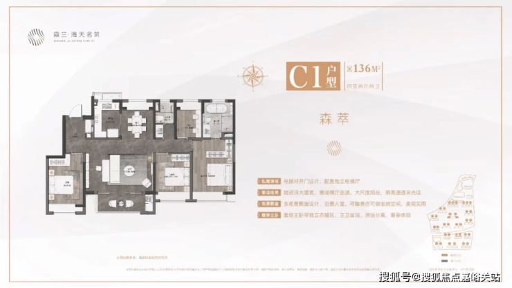 森兰·海天名筑可售住宅分布在中区和南区,由南往北层数递增,最大的136户型在最南侧沿河布置,最大化利用自然景观,90、100户型围绕中心大景观环形布置,高效利用景观资源。并且在最中心位置的顶层布置130顶层复式,中心花园与公共通廊的景观一览无余。