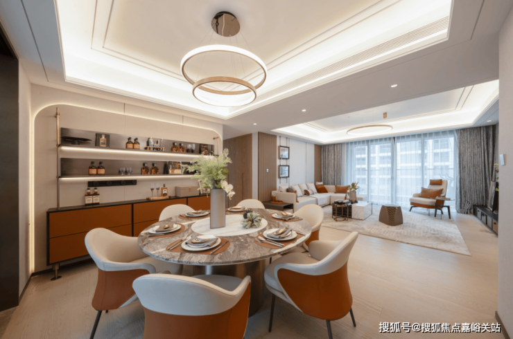 客餐一体化设计,让空间更加开阔通透,无论是家庭聚餐还是朋友聚会,都能轻松容纳,共享欢笑与宁静。