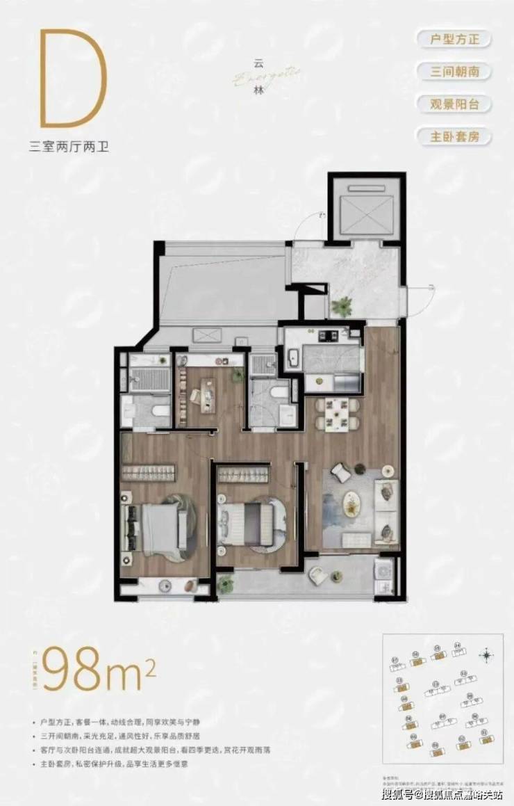 ⑤产品:在售建面约98-168㎡3-4房,小户型双阳台+高得房率,居住体验也更舒适!