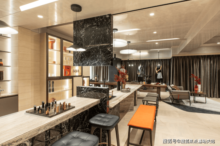 还有吧台、休闲洽谈区、共享会议和健身等功能区,是一个适合交友、会客、休憩、工作、读书、赏景的多功能空间.处处可见的时尚元素,符合当下年轻一代喜好。