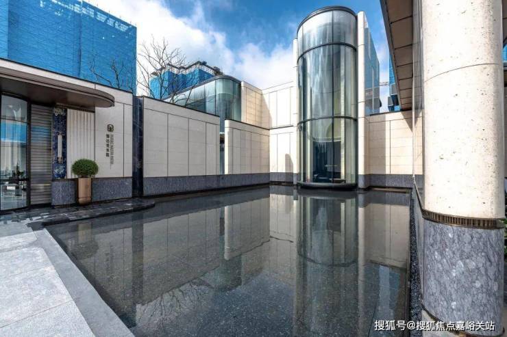 比如招商外滩玺,打造了北外滩绝版的网红实景地库,火爆出圈。比如下面这张绝美的地库玄关实景图,景墙采用折板的石材面,吊顶材质选用古铜色镜面不锈钢,搭配星空顶设计,大气又不失灵动感。