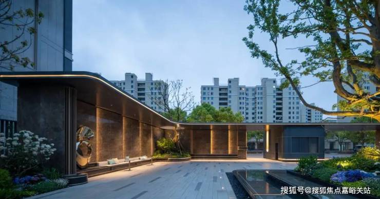 比如项目内的爱神花园,就是取意上海著名的爱神花园。项目使用了淡雅的石材,并勾勒简洁的线条以及弧形设计元素,搭配水景以及特殊植物,营造出了高雅的意境。