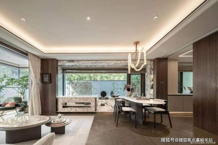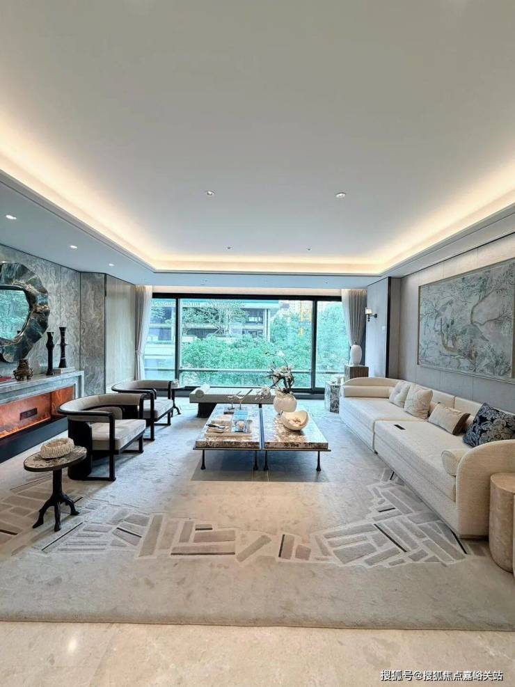 同时也得益于两个地块融合在一起形成了完整地块,项目打造了约160米超长中轴,约4000㎡中轴景观,约700㎡落玉水院、下沉庭院以及私属入户花园。