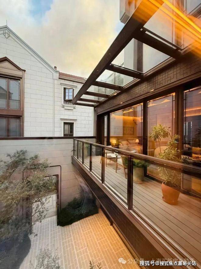 从庭园看向别墅,保留的老山墙、砖楣和门头,再加上悬挑阳台和层层露台,这种传统风貌带给人一种重见历史的感慨,又有温馨、宁静的现代舒适感。