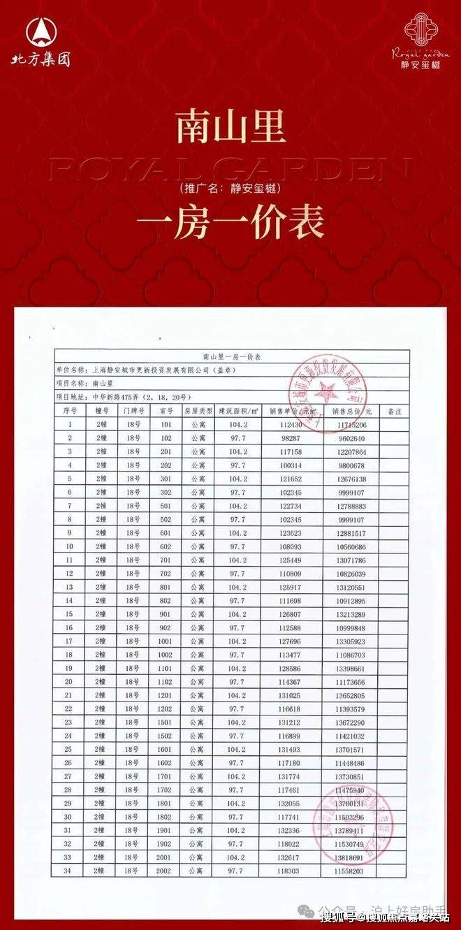 静安玺樾三期一房一价表▼
