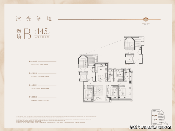 户型特点: 4开间朝南,LDK一体化设计,南北通透。客厅面宽达4.3米,外接4.8米长阳台,采光通风俱佳。主卧带270°转角飘窗,主卫也有飘窗赠送。全屋飘窗设计,独立电梯厅,私密性与尊享感强。