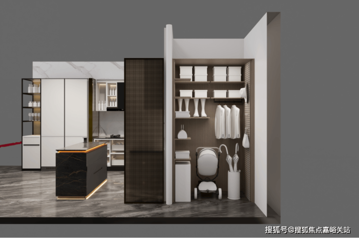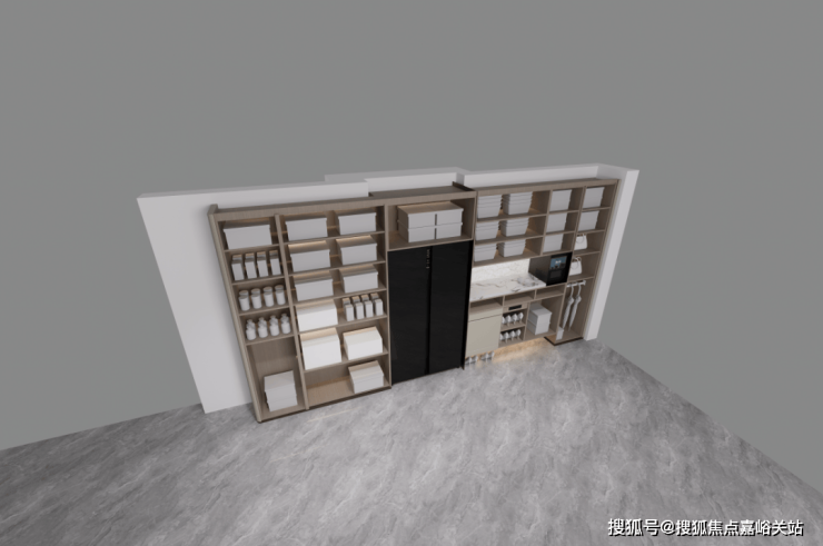 通过示意图我们会看到,上海中建壹品外滩源著官方售楼处电话:400-118-5086√√√【已认证】一般项目的玄关柜处于成本原因只会做到下图中间位置的冰箱位置就结束,而外滩源著在标配的双开门冰箱(小户型博世或同等品牌、大户型利勃海尔或同等品牌)左侧还额外交付有完整的储物空间: