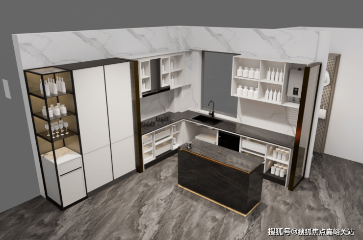 约143平户型,上海中建壹品外滩源著官方售楼处电话:400-118-5086√√√【已认证】厨房岛台和上柜都不稀奇,厨房外的半开放式餐边柜和利勃海尔内嵌式同样也作为交付标准附赠,柜体额外提供接近1立方面积的收纳空间: