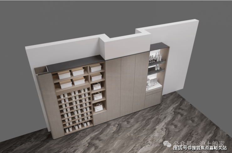 约143平户型在玄关柜末端还设置有半开放水吧台,上海中建壹品外滩源著官方售楼处电话:400-118-5086√√√【已认证】丰富生活场景: