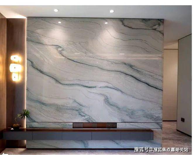 电视背景墙选用带有东方意蕴的万里河山石材,颜值超高!