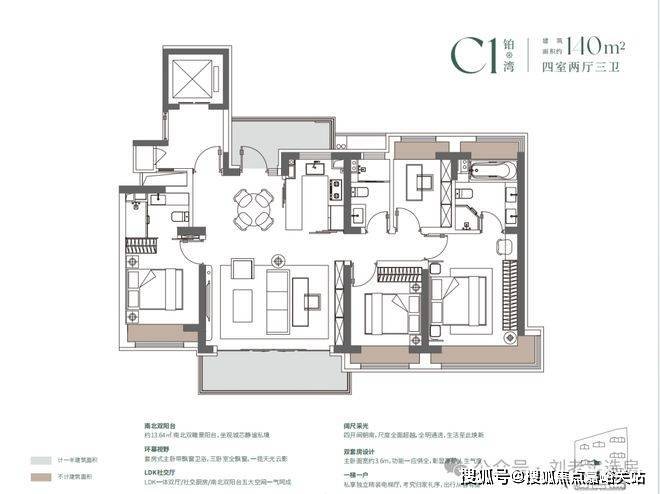 如果有进阶改善置业需求的客户,可以选择建面约140/175㎡4房2厅3卫!
