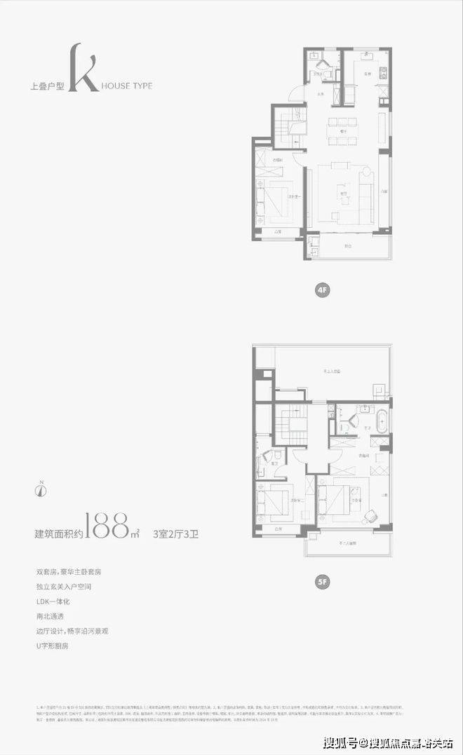 建面约188㎡上叠户型图▼