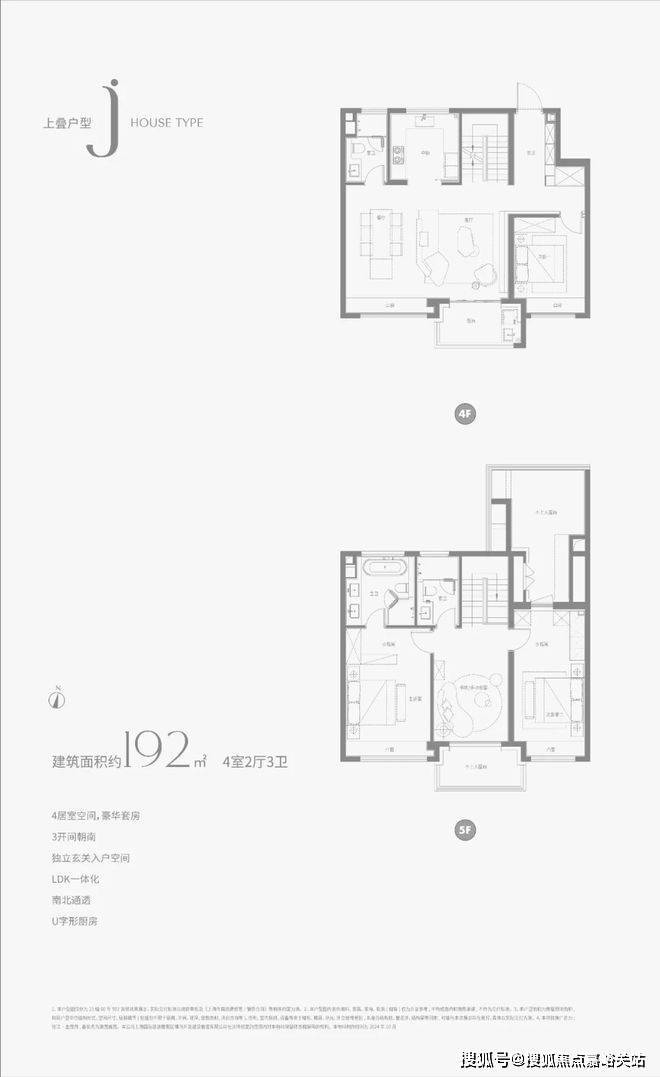 建面约192㎡中叠户型图▼