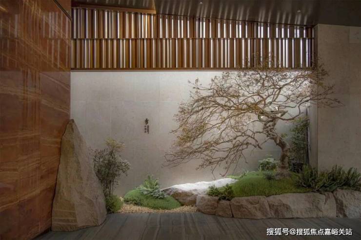 为了使我们在稀缺的地段营造稀缺的资源,把生活的想象现实化, 越秀·外滩樾还在会所引 “山水入园” 。在空间有限的情况下,进行垂直空间的挖掘,营造了 坡道景观、山水庭院和会所