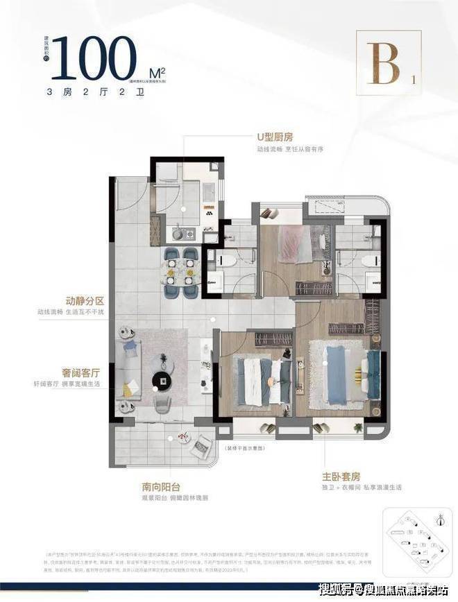 全三房两厅两卫的空间布局,功能完善,覆盖全生命周期的居住需求;