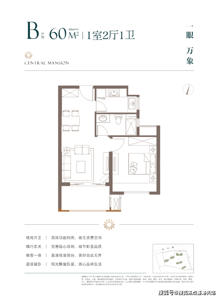项目位于内中环, 本批次推售60-125㎡1-3房,合计61套!