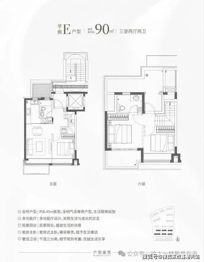 华发还有目前松江比较稀缺的叠加房源,分为六层叠加和四层叠加。主力户型建面约90-133㎡,特别是这个E户型,建面仅约90㎡,对于想住叠加但预算有限的购房者来说,面宽约6.45米,上下动静分离带,是个不错的选择!
