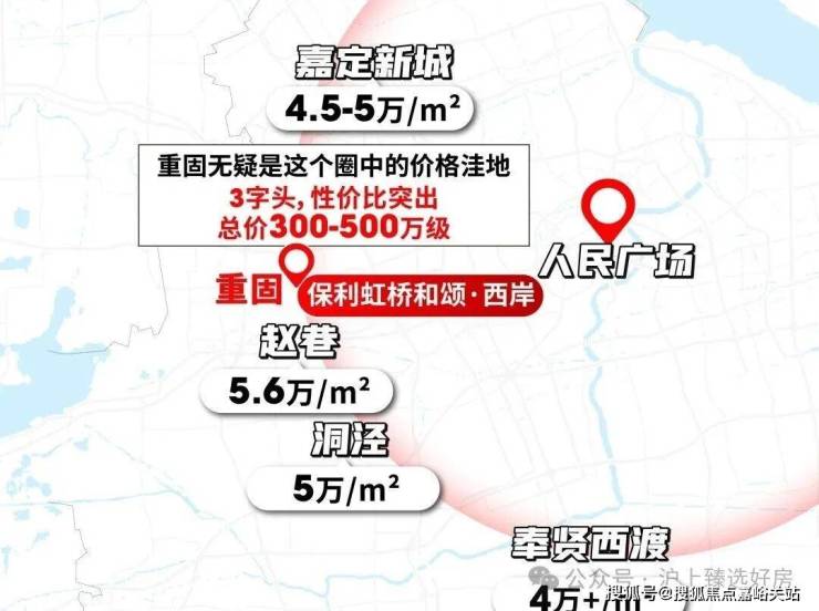 若以市中心为圆心,重固与赵巷、洞泾处于同一半径范围内,但后者房价已达5-5.6万/㎡,而重固仅3字头