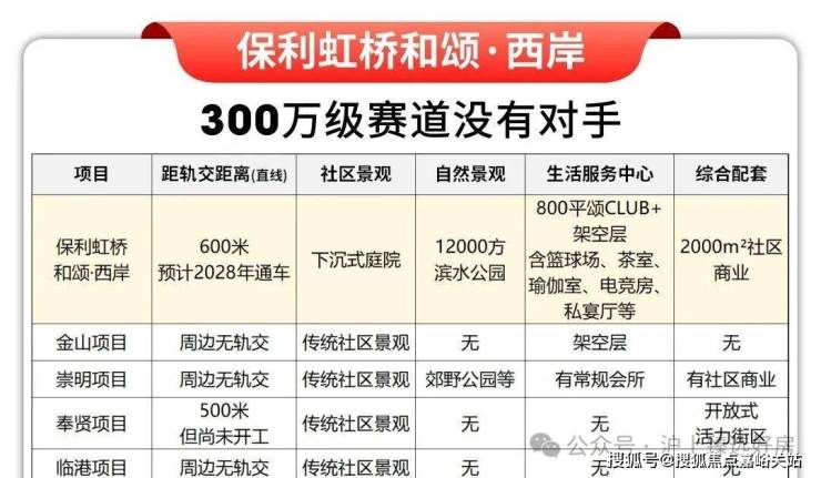 而保利虹桥和颂·西岸,3房起步仅300万级,改善4房500万级,与周边区域相比,无疑处于价格洼地!🗝️