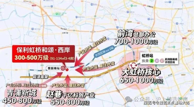 从周边区域房价来看,东面2站之隔的前湾,房价已达700-1000万级;徐泾650-1000万级,赵巷550-800万级,即便下游的青浦新城,房价也处于450-800万级